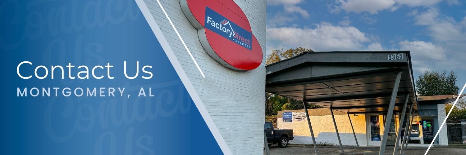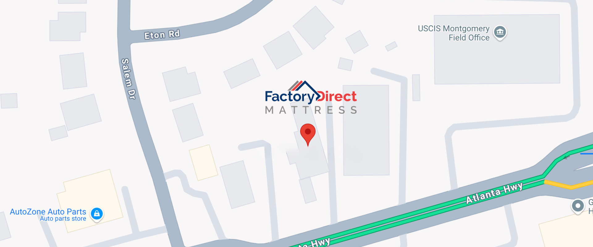 Welcome to Factory Direct Mattress in Montgomery! We’re here to help you find the perfect mattress and answer any questions about our products or financing options. Reach out using the form below, give us a call, or visit our showroom. Our team is ready to help you get the sleep you deserve!